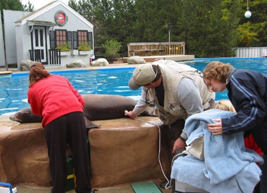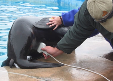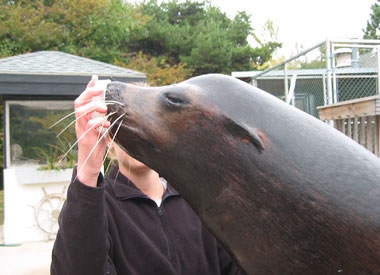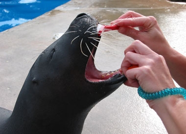 Husbandry care helps to double the lifespan of these animals in zoological environments. Through cooperative medical care, seals and sea lions live into their 30s while their wild counterparts may only reach 10-15 years of age. Medical procedures such as teeth brushing, fetal ultrasounds and routine animal weights are essential to providing exceptional care.