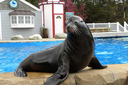 Harley is the newest addition to our Ocean Connections family. He is our 7 year old California Sea Lion who came to us from the Brookfield Zoo in Illinois. Harley was actually born in the wild and was rescued two times as a stranded pup on the beaches in California. While at the marine mammal stranding center, medical testing was done and it was found that Harley was in fact deaf. Being deaf this made Harley a non releasable animal. Due to his deafness, Harley’s survivability rate in the wild would have been very low. Once this was determined he then found his home at the Brookfield Zoo. Harley moved to Ocean Connections in May of 2009 in order to breed and join our existing colony of sea lions. Harley is a very fun and unique animal who thrives on the attention of his trainers and other animals. He is an extremely quick learner and enjoys training, performing in presentations, and relaxing poolside. Harley will start shows this season. Be sure to stop bye and visit our newest performer!