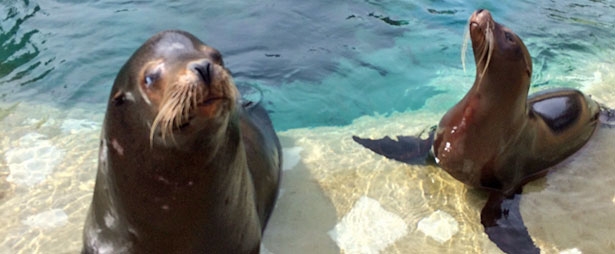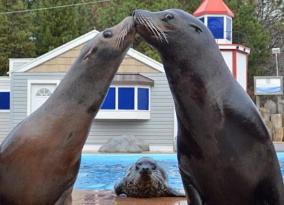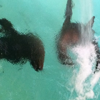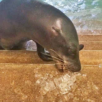 Currently, the pups are re-acclimating to the cold weather, by eating lots of yummy fish to build up a nice thick blubber layer for the winter months. When temperatures are not too cold, the pups love romping through the pool, especially with their big buddy Diego. These flippered friends have a ball chasing each other and engaging in games of tag at all hours of the day!