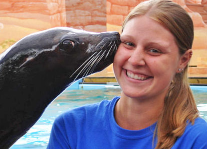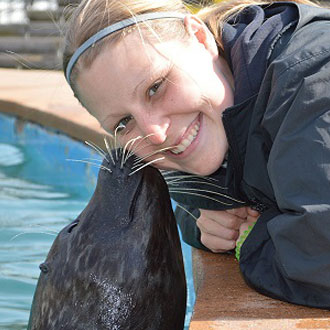 I saw a dolphin show when I was four years old and I came home from the aquarium that day with a dolphin stuffed animal convinced that I would one day train marine mammals. It was a dream that stuck, but I couldn’t fully explain why until I was in college. I have always loved animals but realized later in life that my other great passion is teaching. I love to see that light bulb go off, whether it is in the eyes of an animal I’m training or in the eyes of someone who has just discovered something new. My passions inspired me to get here, and it’s amazing to realize that every day I get to live out my dreams.