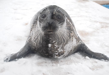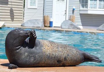 Satara is our female Atlantic harbor seal and has been serving as an ambassador educating public at Ocean Connections since her arrival in 1997. Satara enjoys interacting with the public in daily presentations and interactive programs. People of all ages enjoy her in our Aquatic Adventure programs as she loves to rub against participant’s legs and entertain them with her antics. The only female harbor seal in our pool, Satara is certainly in charge! Satara's favorite things to do are to play with enrichment in her environment and to chase the other animals around the pool letting them know that seals rule!