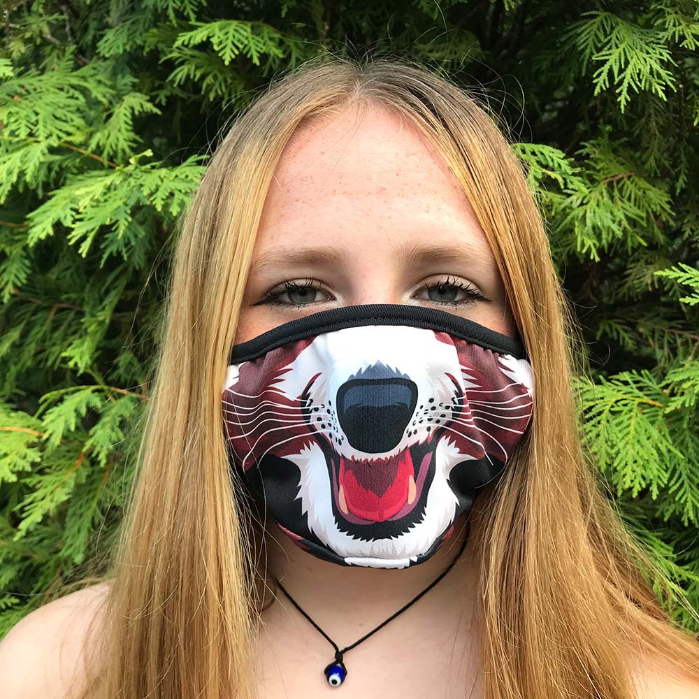 Who doesn't love the adorable red panda?! This face mask is the perfect fit to show off your passion for conservation. Available in youth and adult sizes. Two-ply cloth mask, moisture wicking polyester/spandex performance fabric, adjustable nose piece to form fit. Perfect for both hot and cold environments.